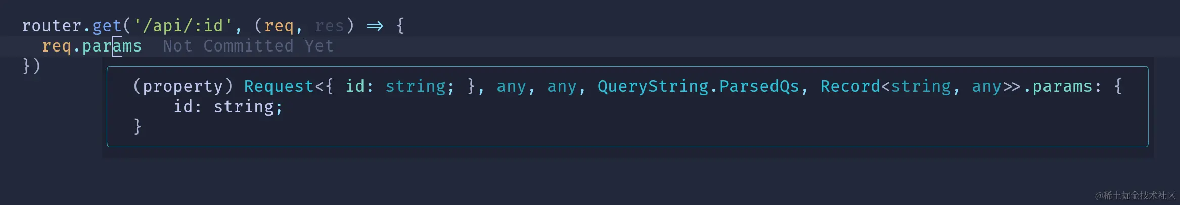 这段代码在express中注册了一个路由,我在路由的字符串schema中定义了一个id参数,但在监听方法的req.params中,竟然提取到了字符串schema中的参数类。