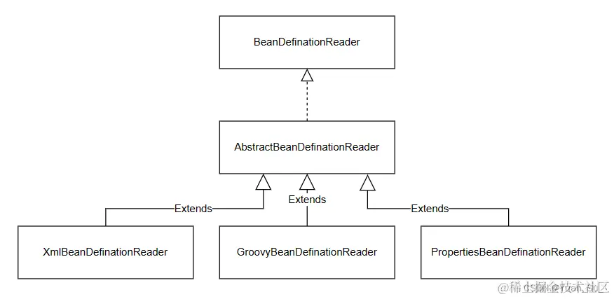 BeanDefinationReader是一个接口,其不同的实现类对不同形式的配置信息进行读取并封装为BeanDefination,下图为结构图: