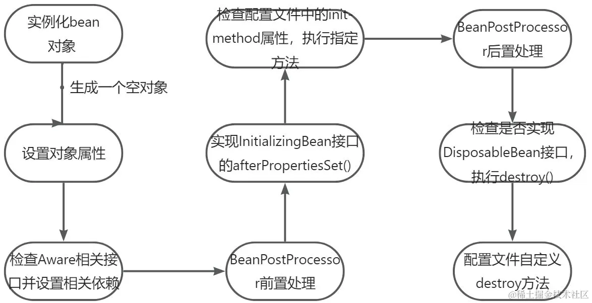 - 如果在Bean配置文件配置了destroy-method属性,Spring会自动调用其配置销毁方法