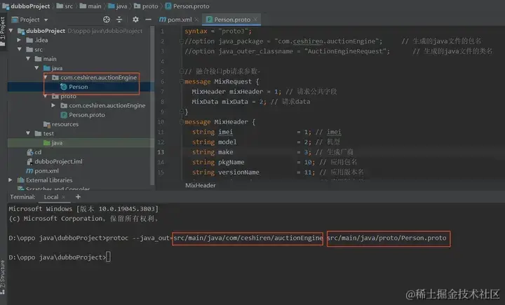 src/main/java/com/ceshiren/auctionEngine生成文件路径src/main/java/proto/Person.proto指定proto文件