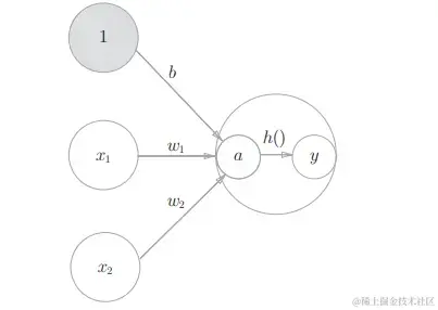 计算出来加权和后,进入到激活函数的计算过程,用图来表示如下所示