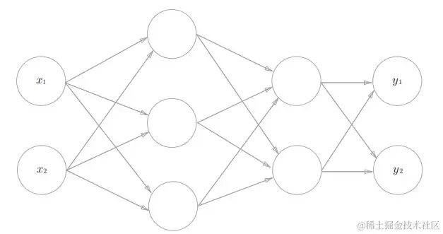 3层神经网络:输入层(第0层)有2个神经元,第1个隐藏层(第1层)有3个神经元,第2个隐藏层(第2层)有2个神经元,输出层(第3层)有2个神经元