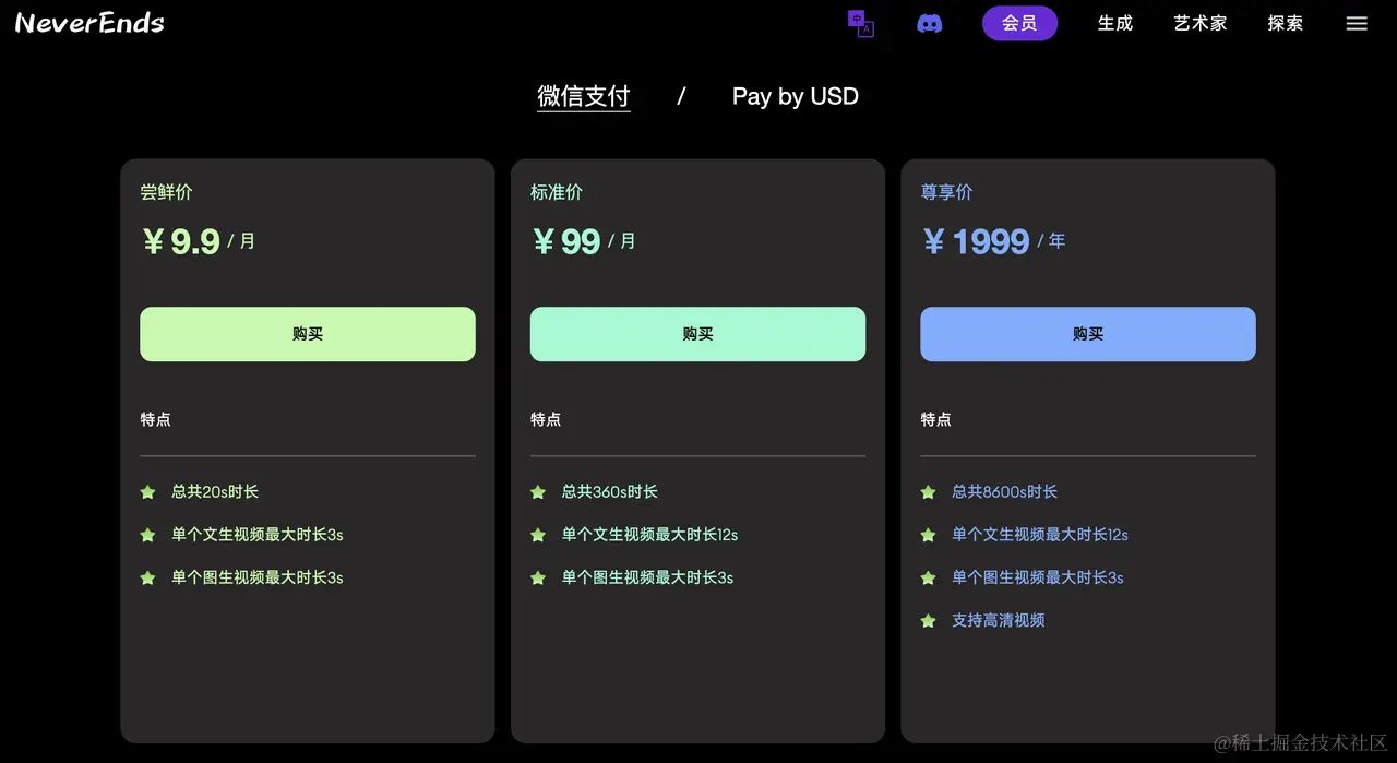 简单体验了一下,下面是使用 NeverEnds 生成的视频:
