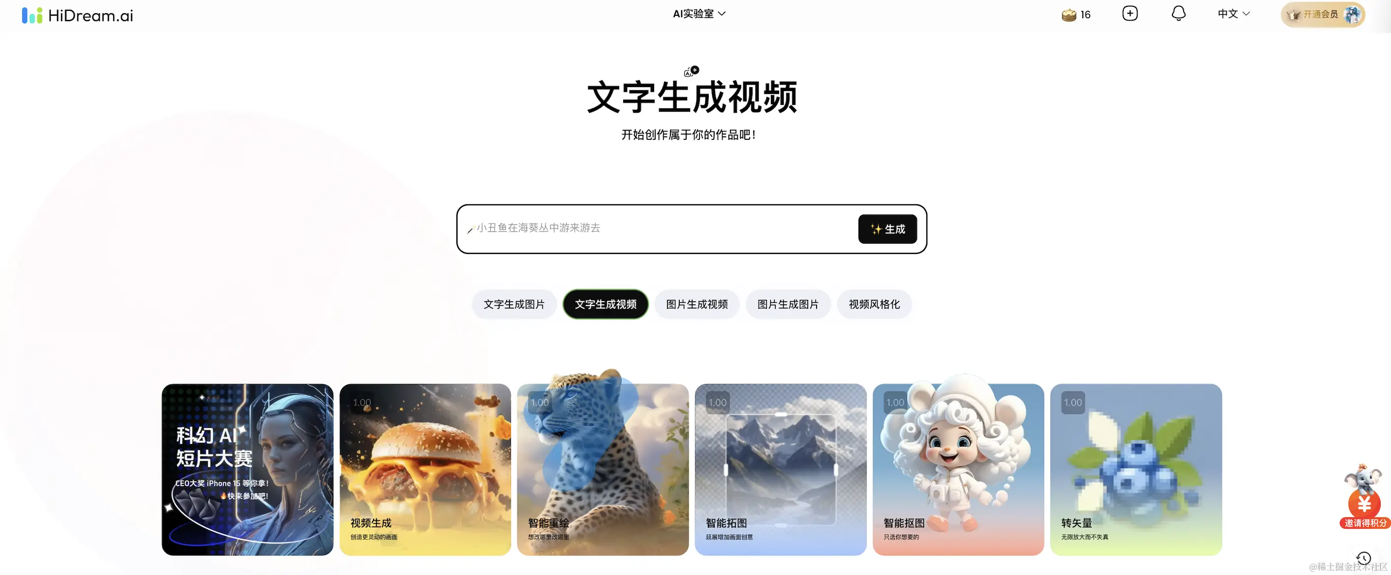 HiDream 是一个强大的 AI 平台,不仅包含包含 AI 视频生成功能,还包含文生图及图片重绘、智能拓图、智能抠图等图片编辑功能。