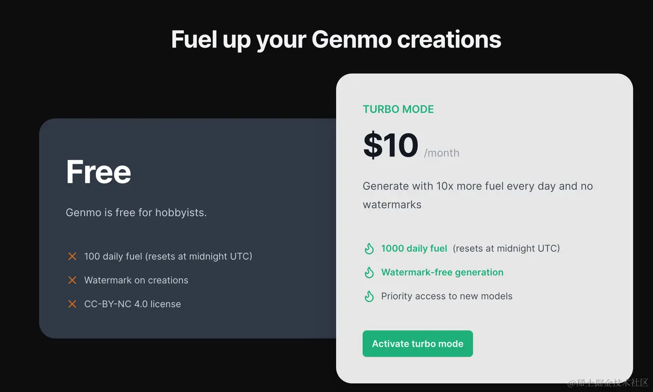 再来说说 Genmo,Genmo 也是一款支持「文生视频」和「图生视频」的 AI 工具,而且目前也是可以免费使用的。