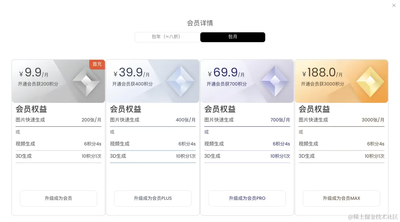相比于免费版,升级版每天会比免费版多 10 倍的额度,且生成的视频无水印,还可以优先使用一些新的模型。