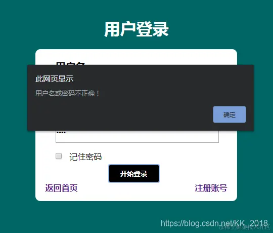 alert("用户名或密码不正确!");