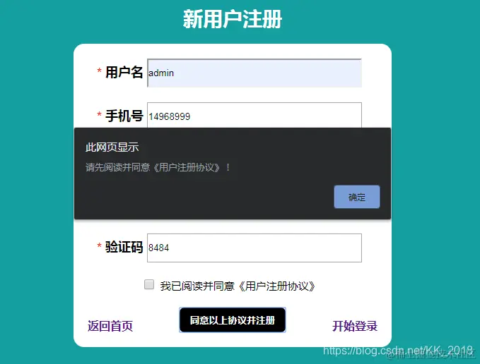 alert("请先阅读并同意《用户注册协议》!")