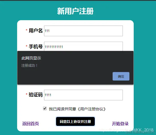 alert("注册成功!");
