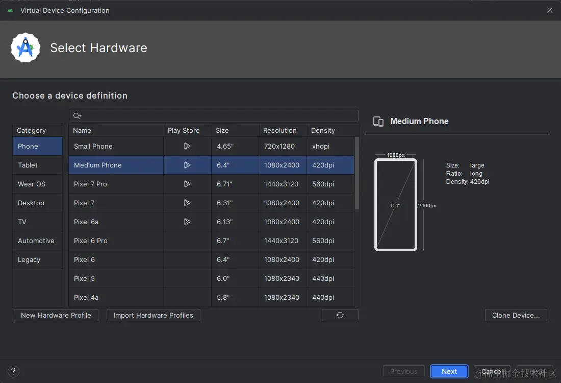 这里使用的是android官方的模拟器 Android Virtual Device(简称 AVD)。