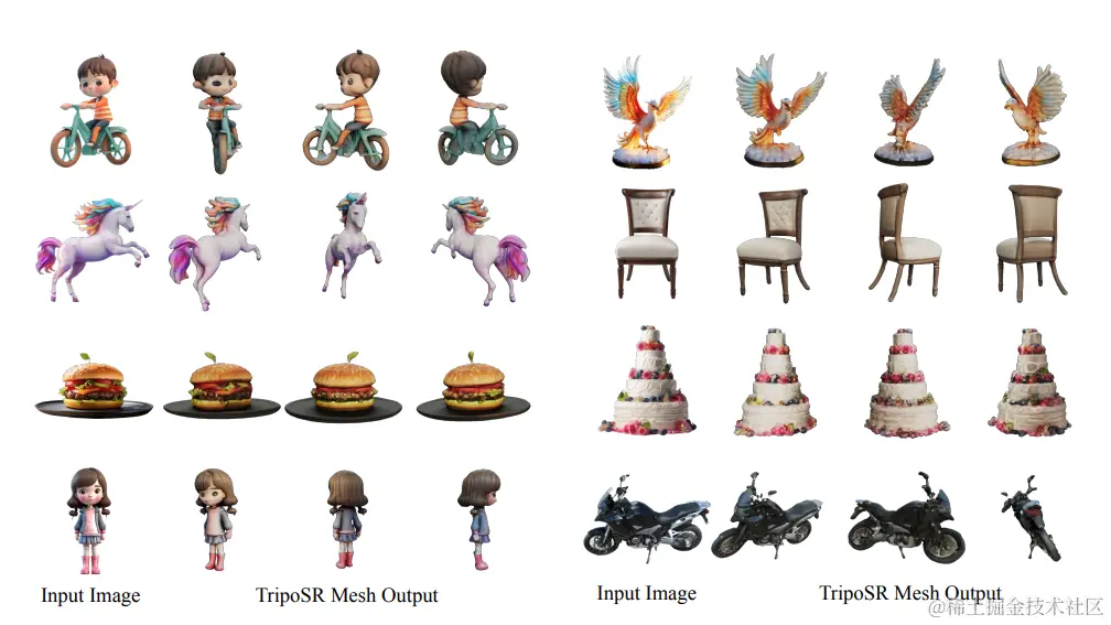 本次 Tripo AI 和 Stability AI 联合共同推出了首个 LRM 的高质量开源实现 - TripoSR,可以几乎实时根据用户提供的图像生成高质量的三维模型,极大地填补了 3D 生成式人工智能领域的一个关键空白。