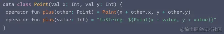 - 操作符函数的重载是kotlin提供的一种机制,上面描述的操作符通常用于数据结构中,比如基础变量,数组,list,map等,kotlin提供了操作符函数的重载帮助用户自定义操作符函数用来实现类级别的需求和场景,通常重载的方式是:类中成员函数重载或者类的扩展函数进行重载。