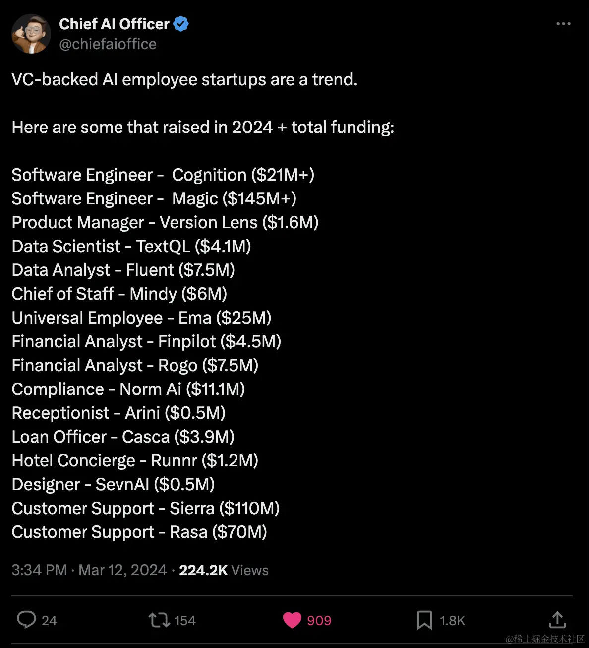 Talin整理:风险投资支持的AI员工初创公司和总融资额