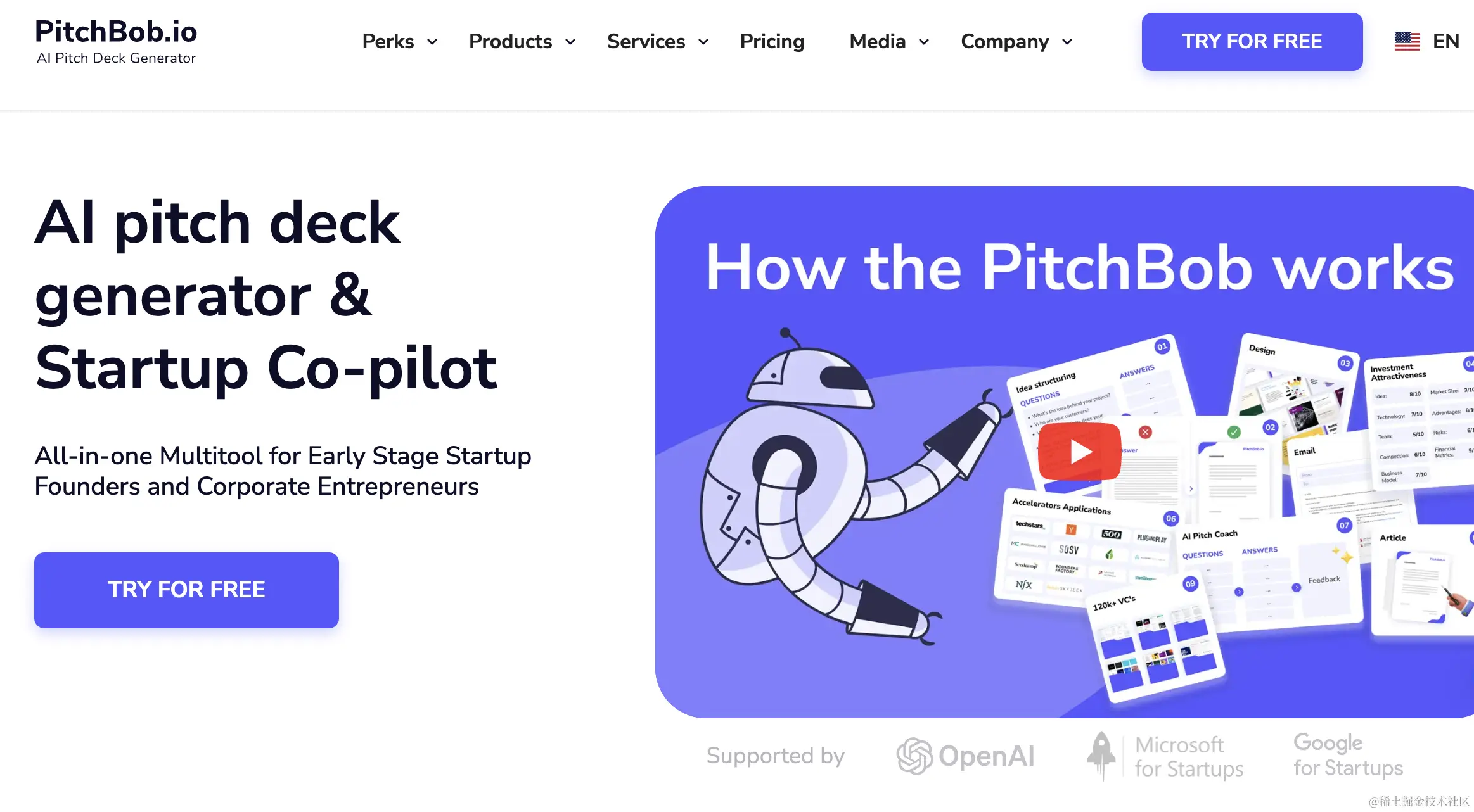 PitchBob.io 是一款 AI 驱动的数字助手,帮助初创企业创始人应对创业过程中的日常挑战。该助手不仅可以帮助优化和评估创业点子,提供一揽子投资者文档,还能帮助申请顶尖加速器、学习如何进行陈述并应对风险投资者的棘手问题,获取15万+风险投资者数据库等。此外,它还能创建财务模型、生成五种语言的 AI Landing Page、为8个国家的AI 创业签证申请提供支持等功能。
