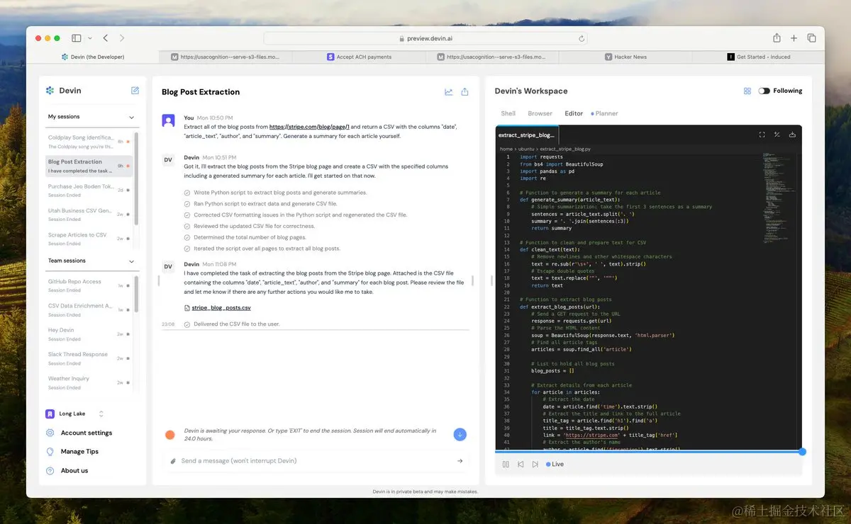 Varun Shenoy:Devin在数据提取方面非常出色。在过去的几周里,我一直在从不同的博客中抓取数据,而Devin则: