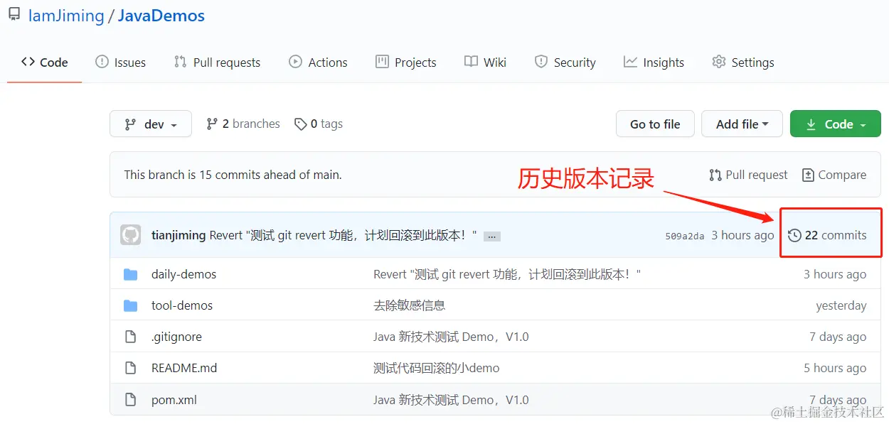 通过本篇,你将学会在GitHub官网上,查询自己项目的【历史提交记录】,还有【版本的回滚】操作。