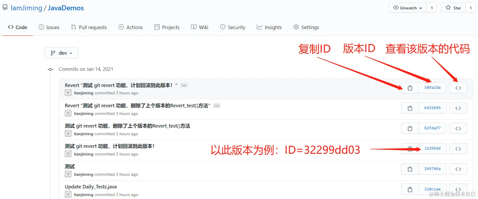先说一句,GitHub 的网页上没有 “roll back” 功能,只能查看ID和代码!!如果你找到了,欢迎评论指正!!