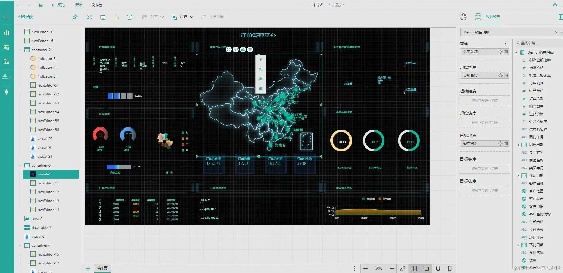 创建模板之后,找到对应的组件,更换绑定的数据就可以,这样就完成了一个仪表板的设计。