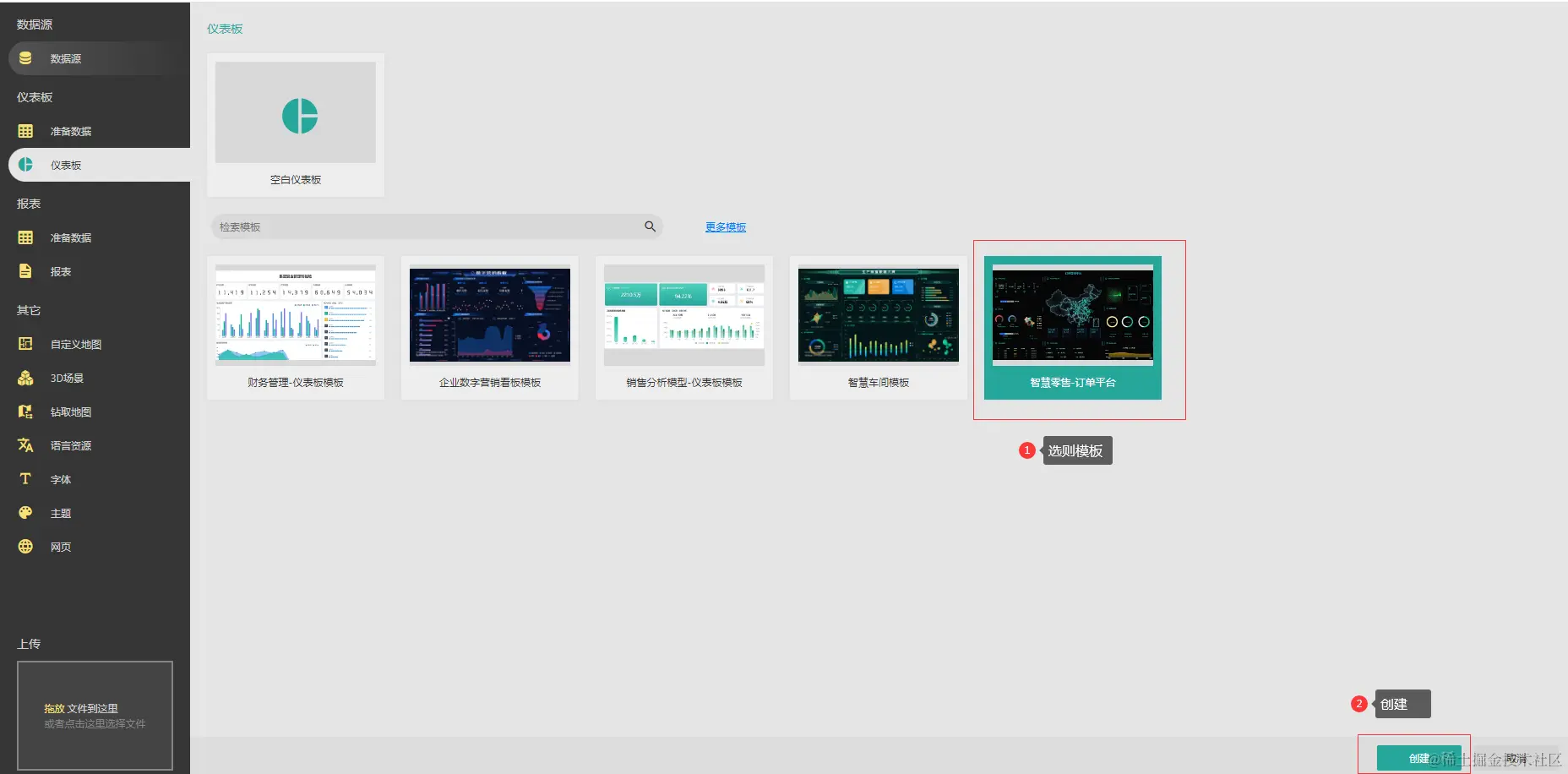 下载的模板在Wyn中导入,就可以通过模板快速创建:
