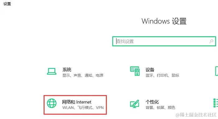 步骤1:在Windows系统中,通过组合键 【Win+i】 打开设置窗口,点击 【网络和Internet】 。