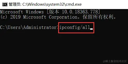 步骤2:然后输入命令 【ipconfig/all】 并回车。