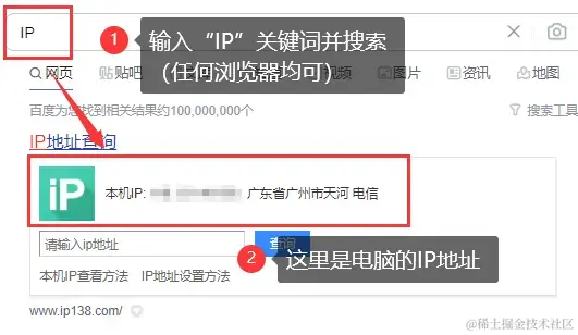 电脑的IP地址在哪里找?我们可以在浏览器界面搜索 【IP】 来查看本机IP地址,该网站下方会显示您的电脑IP地址。