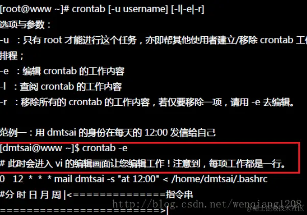 使用crontab -e 命令来编辑
