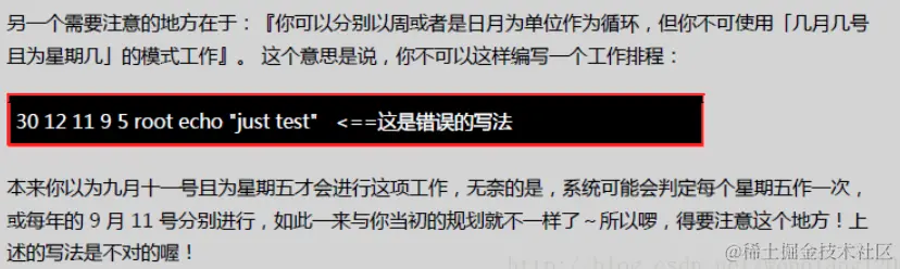 不能使用vi直接编辑该文件,因为可能由于输入语法错误,会导致无法执行cron。