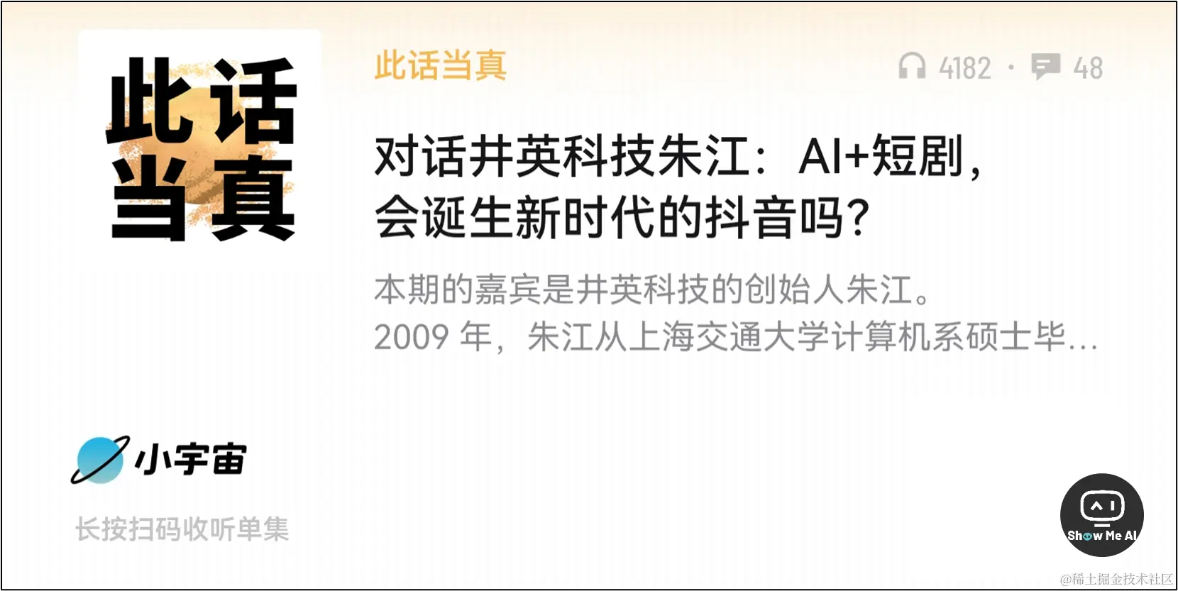 关于「AI短剧」创作和商业化问题,ShowMeAI 整理了几条关键笔记,也是我们认为的这期播客的「精华」所在: