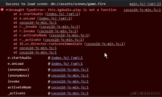 - cocos2d-js-min.js:1 Uncaught TypeError: this.bgAudio.play is not a function