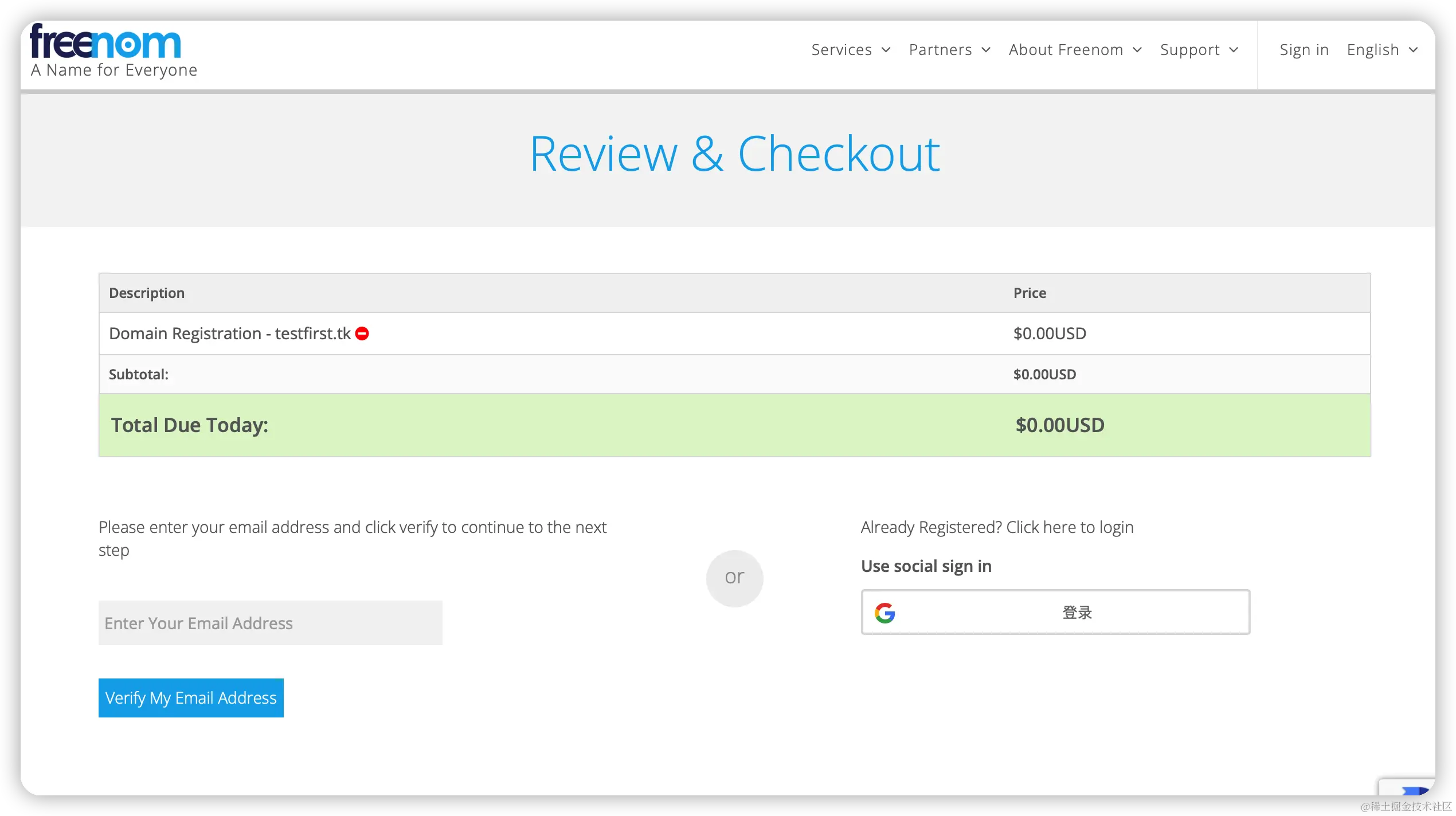 打开freenom官网,注册一个账户【注意:如果没有明显的注册按钮,可以通过如下方式同时申请域名和注册账户】