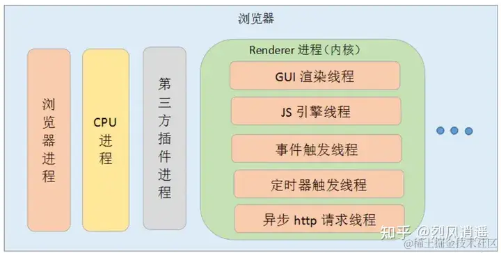 JS引擎线程是在浏览器中工作的,浏览器是支持多线程的。浏览器中除了JS引擎线程外,还主要有异步http请求线程,定时触发线程,事件处理线程,GUI渲染线程等等。浏览器可以支持这些线程同时运行,但需要注意的是JS引擎线程和GUI渲染线程是互斥的,同一时间只能有一个线程处于工作中。