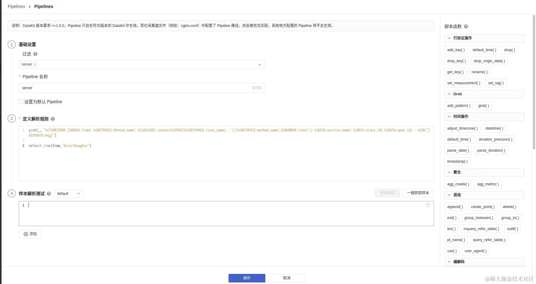 可以按照实际日志格式进行调整,以上 pipeline 只适应 %d{yyyy-MM-dd HH:mm:ss.SSS} [%thread] %-5level %logger{20} - [%method,%line] %X{dd.service} %X{dd.trace_id} %X{dd.span_id} - %msg%n 的日志格式。