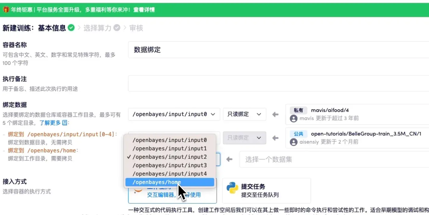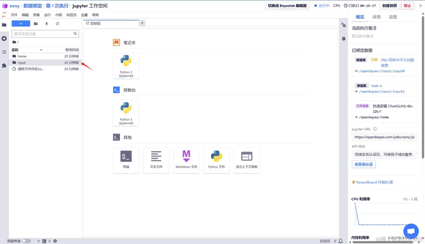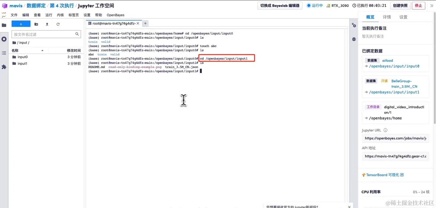 一种叫做数据目录为 /openbayes/input/input[0-4] 这样的目录。绑定到数据目录,可以理解为是一种数据的快捷方式,不需要任何的数据拷贝,在绑定数据之后就可以直接访问,无需额外拷贝时间。