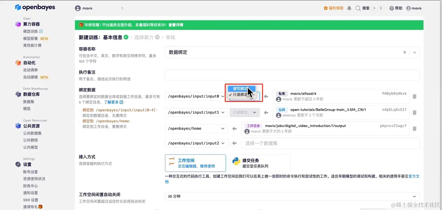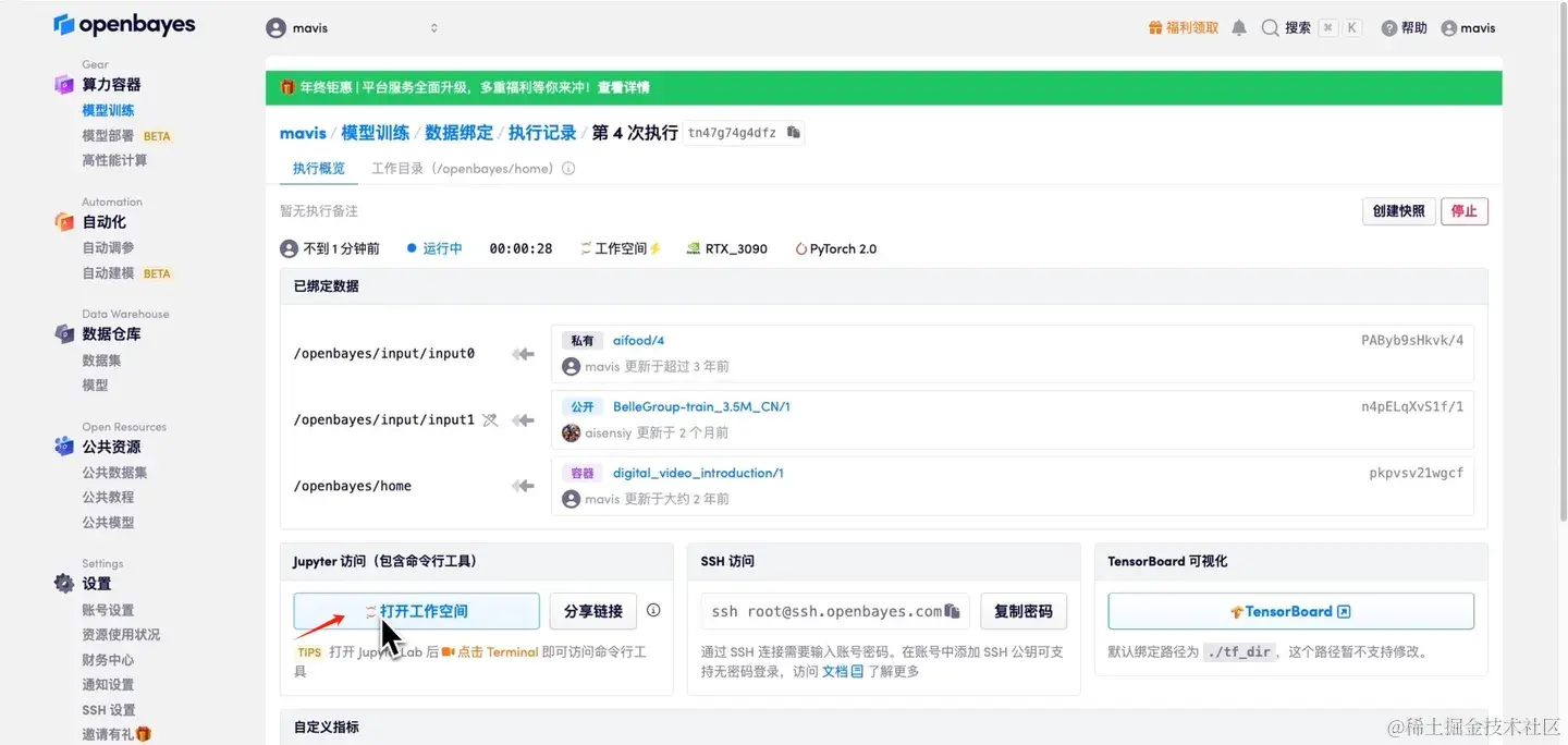 本教程主要为大家介绍怎样在 OpenBayes 上进行数据的绑定以及如何使用已绑定的数据,新朋友点击下方链接注册后,即可获得 4 小时 RTX 4090 + 5 小时 CPU 的免费使用时长哦!