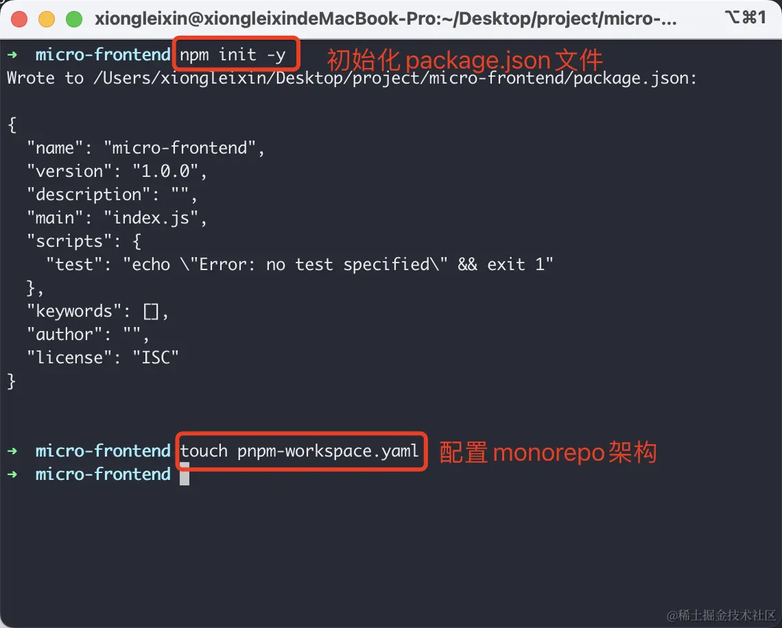 2)第二步初始化package.json文件并基于 pnpm 配置 monorepo 架构(详细文档移步从理解软/硬链接掌握PNPM),如下: