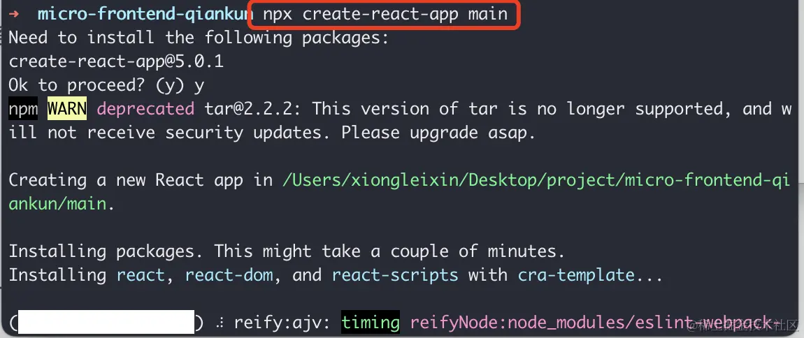 1)第一步安装主应用基座,执行如下图命令: