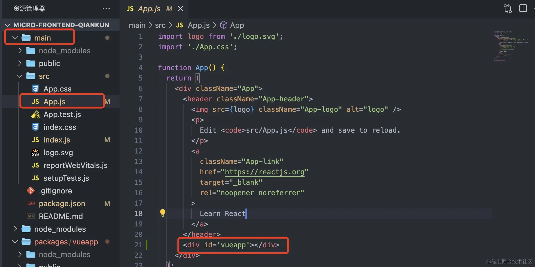 1)创建主应用(这次我们使用create-react-app来创建基于react的主应用)