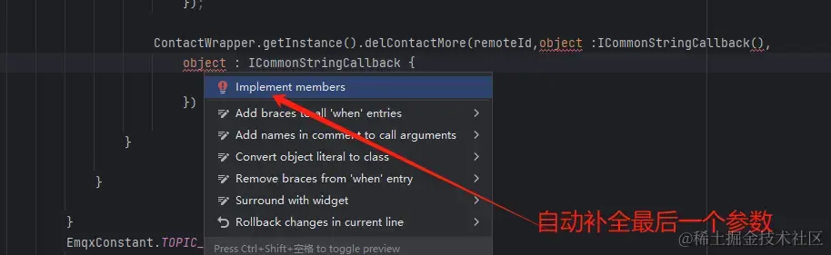 自动补全实现接口第二个接口参数