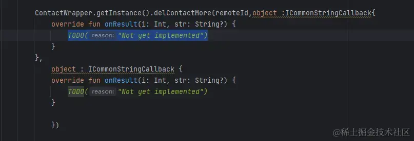 ContactWrapper.getInstance().delContactMore(remoteId,object :ICommonStringCallback,object:ICommonStringCallback);