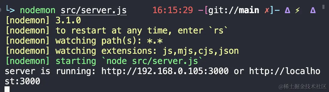 nodemon src/server.js,然后浏览器打开 http://localhost:3000 看效果