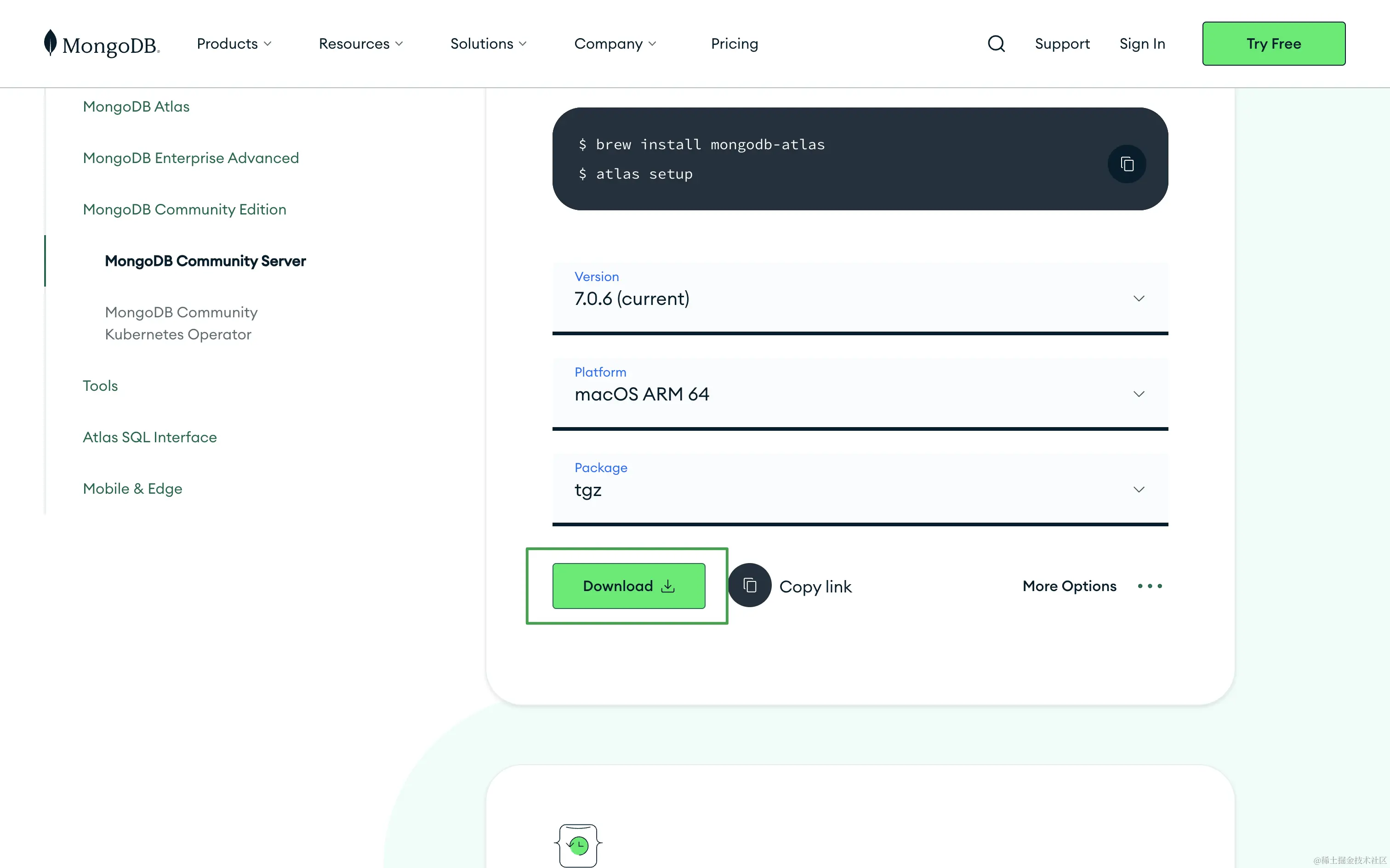 1、去官网下载压缩包:www.mongodb.com/try/downloa…