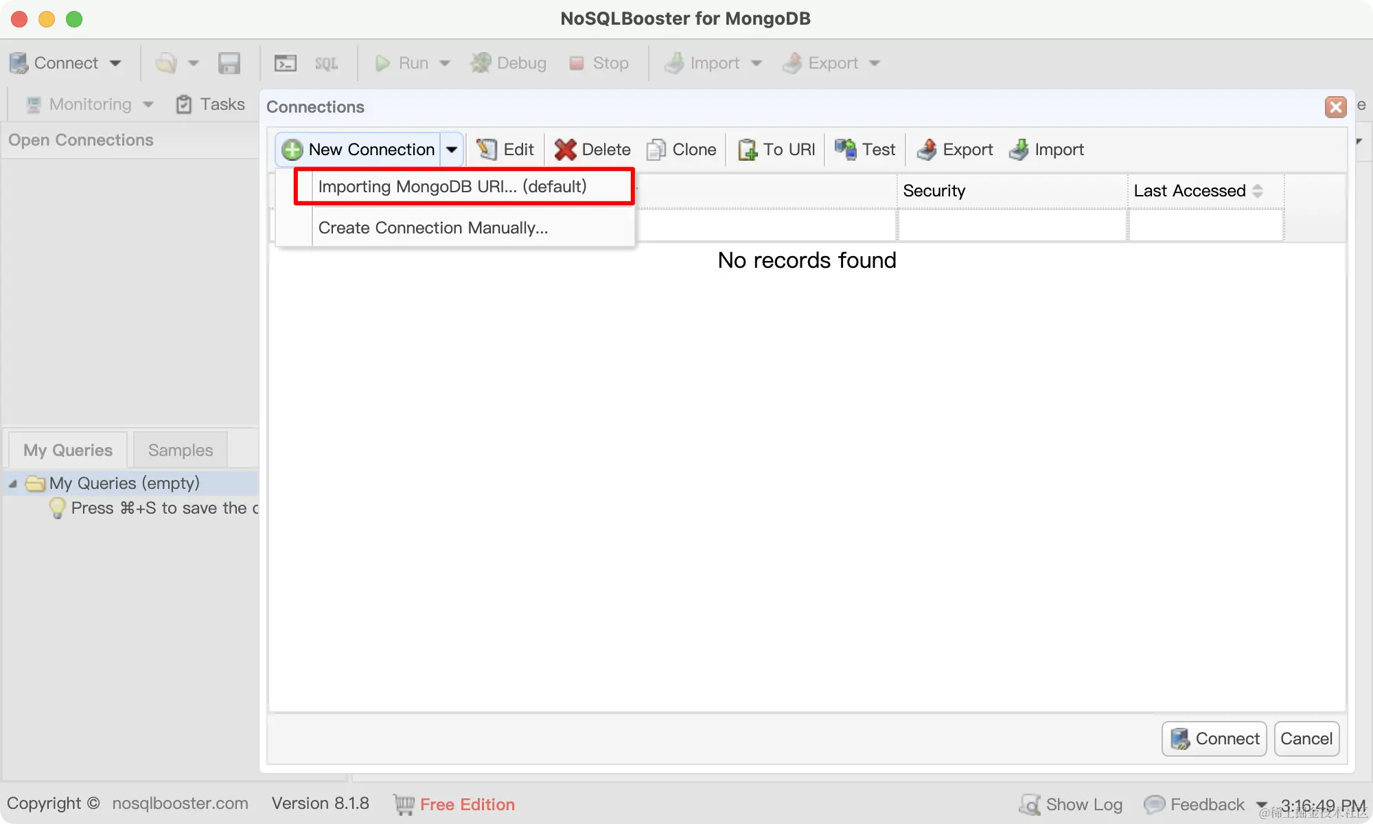 1、NoSQLBooster 下载地址:官网下载地址,然后安装、打开,进入主页面