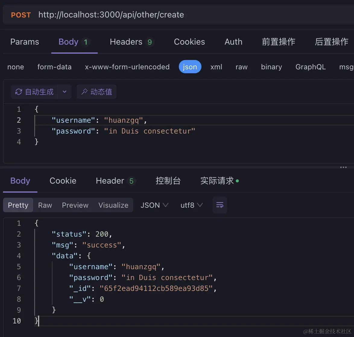 const res = await Other.create({ username, password });