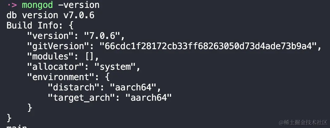 7、终端内继续输入mongod -version,正常情况可以看到有打印