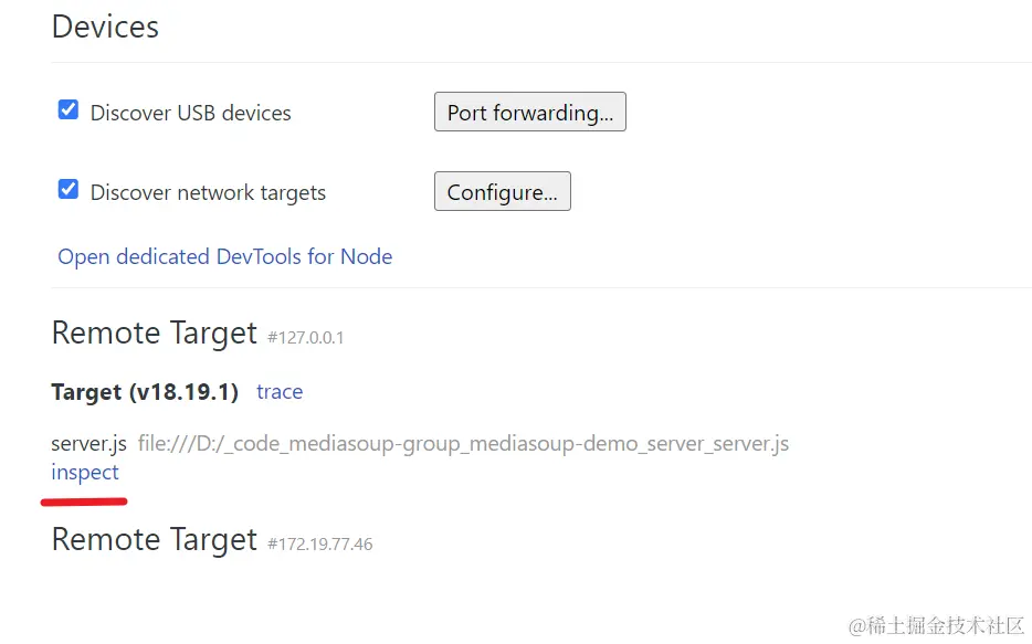运行命令后,去Chrome浏览器打开:chrome://inspect/#devices