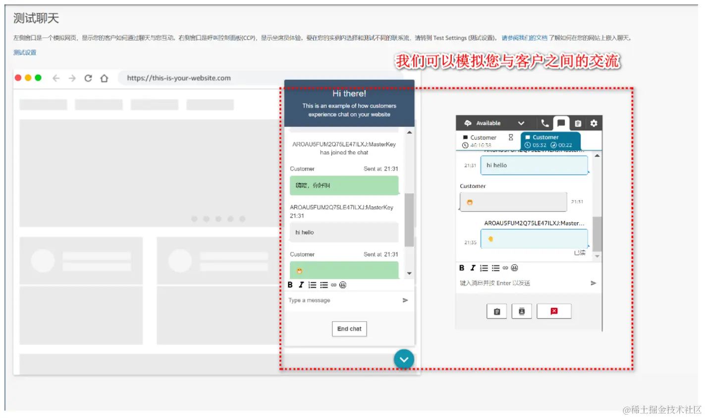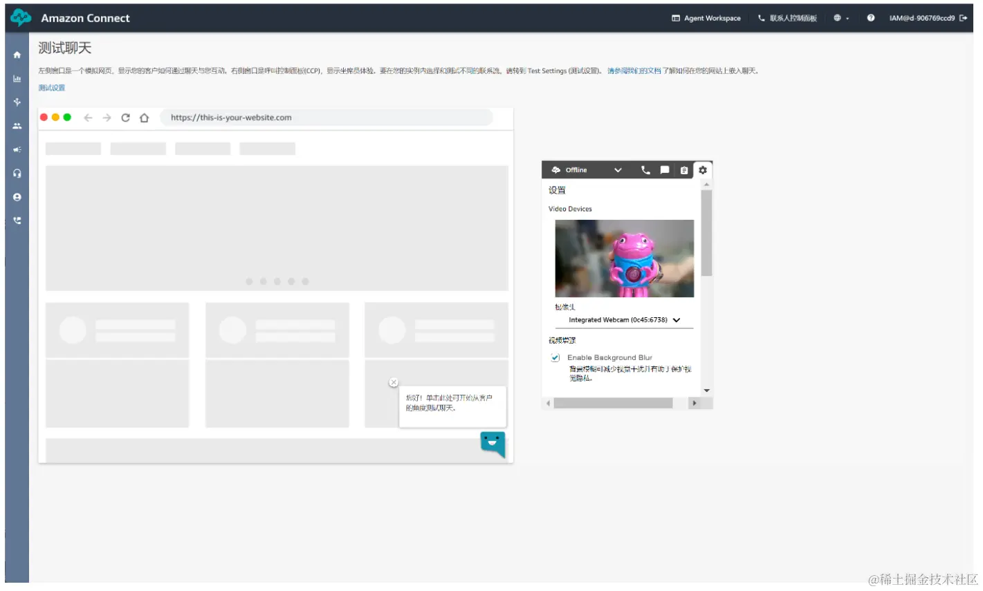 - 实际测试的体验:我亲自创建了电话号码进行了实际测试。在此过程中,Amazon Connect 稳定的通话质量和友好的操作界面给我留下了深刻的印象。特别是在聊天功能测试方面,系统展现了其高效的交互能力和在实际业务场景中的巨大潜力。