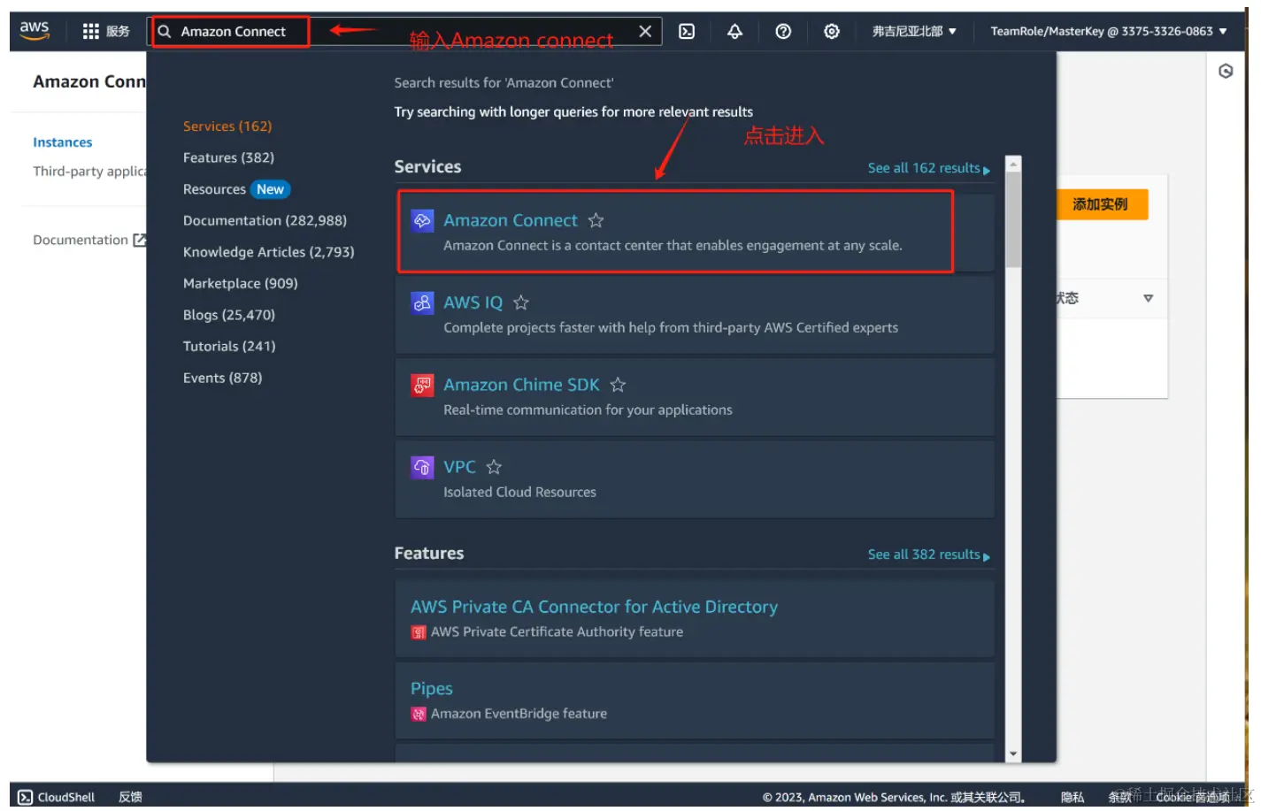 2.输入 Amazon Connect 选中第一个点击进入即可;