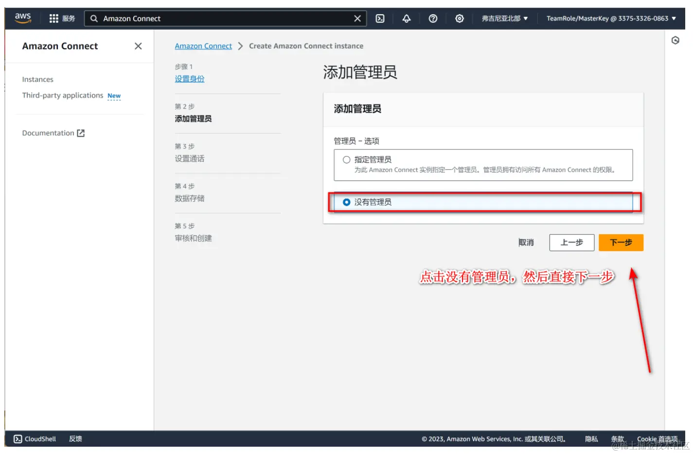 5. 我们这边暂时不选择管理员(大家可以根据自己需求进行选择),点击下一步;