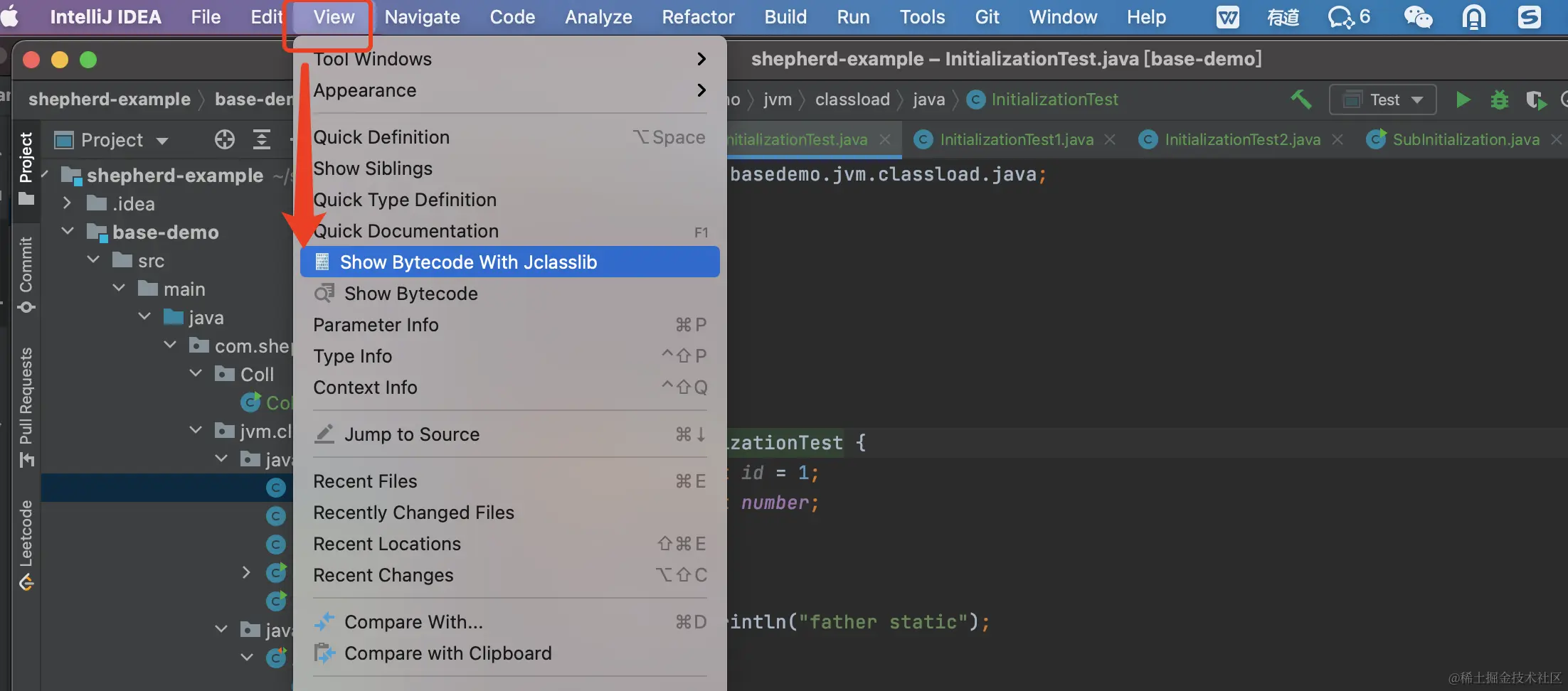 <clinit>()该方法仅能由Java编译器生成并由JVM调用,那么我们怎么验证上面案例执行初始化了呢?这时候就需要在IDEA中安装一个插件: jclasslib Bytecode viewer